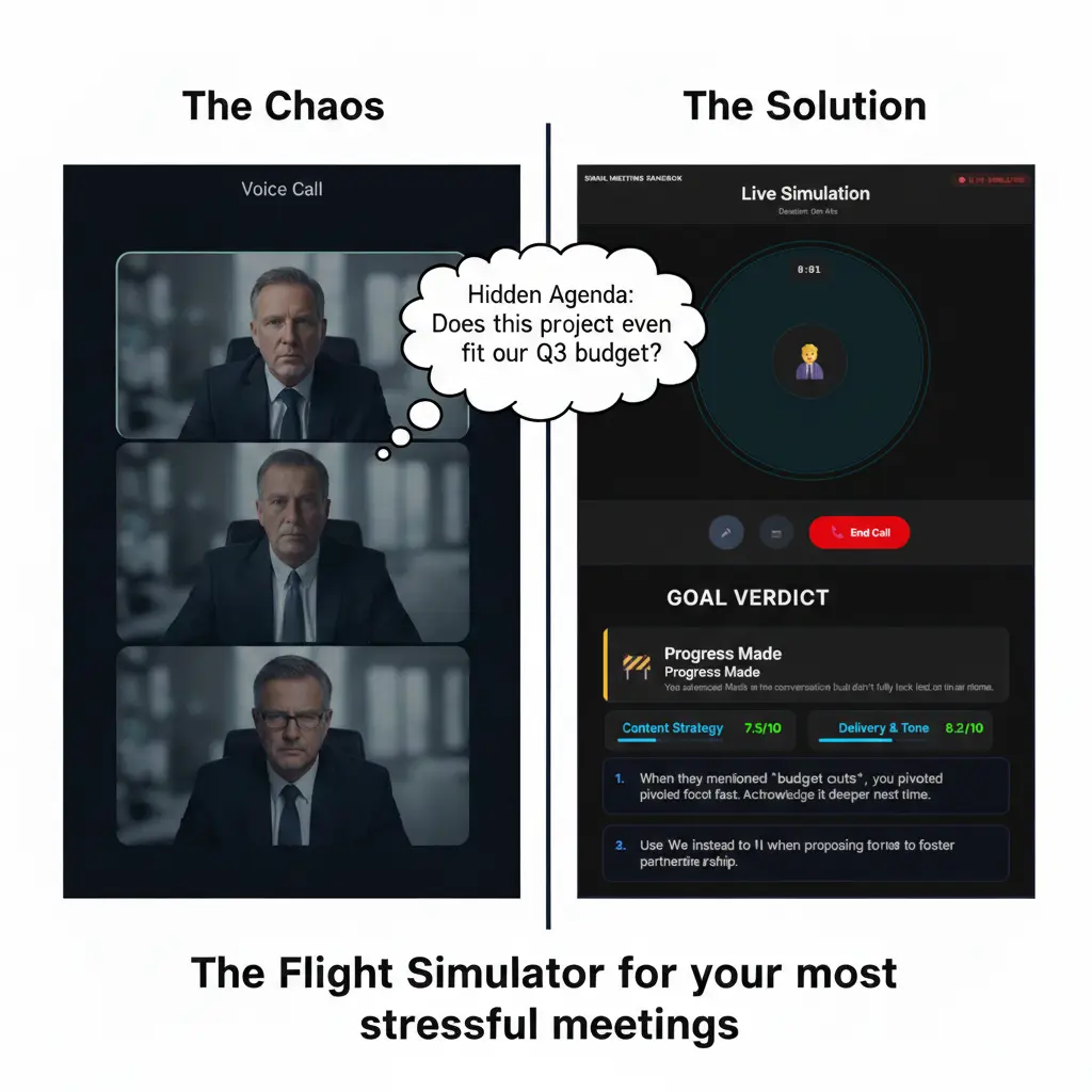 The Benefit: Practice against the "Rockstar Jerk," the "Anxious VP," or the "Skeptic." If you can survive a 5-minute spar with our AI, the real meeting will feel like a breeze.